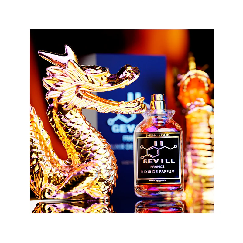 Sheng Long de Gevil France es una fragancia oriental amaderada unisex, inspirada en la fuerza mística y la elegancia ancestral. Combina acordes intensos y exóticos con un fondo profundo y sofisticado, creando un aroma poderoso y envolvente.